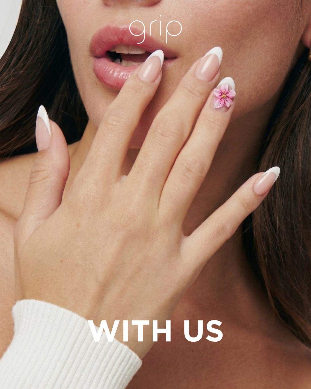 Luxe - Short Almond French 3D Flower Nails